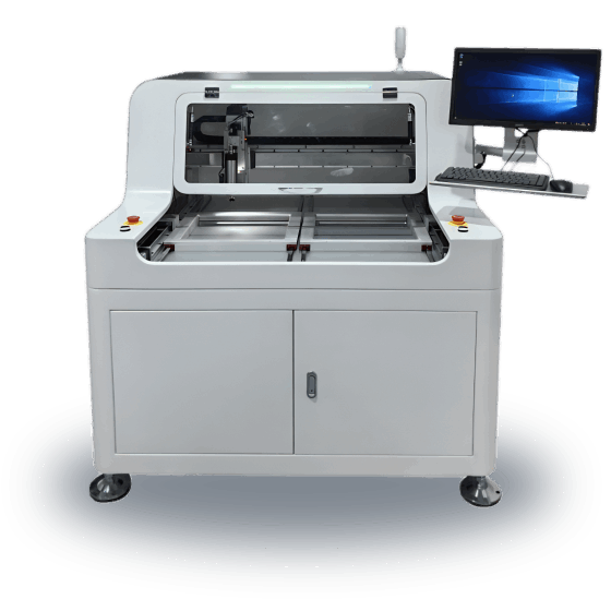 本設(shè)備主要利用銑刀高速運(yùn)轉(zhuǎn)將多連片式PCB按預(yù)先編程路徑分割開來,取代人工折斷或V-CUT或PUSH的切割瑕疵,有效的降低分板時產(chǎn)生的應(yīng)力,并且分板切割面光滑無毛刺