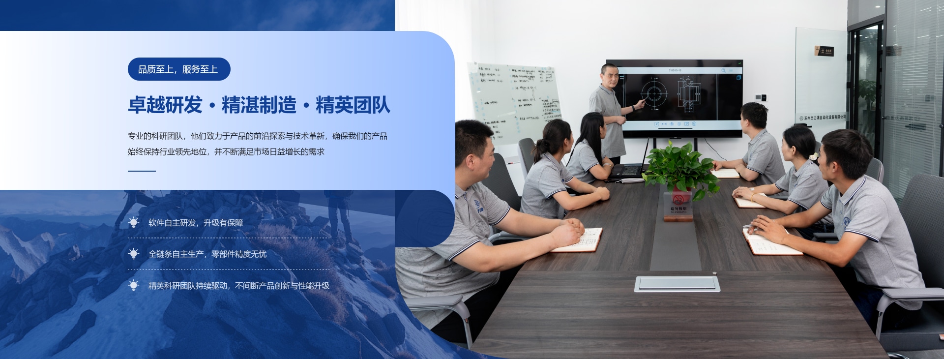 公司擁有一支高水平的研發(fā)和制造團(tuán)隊,包括軟硬件契合的研發(fā)、設(shè)計和生產(chǎn),研發(fā)和生產(chǎn)了多款行業(yè)自動化設(shè)備, 并和多家高新技術(shù)企業(yè)建立了長期的合作關(guān)系,業(yè)務(wù)及影響力遍及整個大陸地區(qū), 成為工業(yè)級客戶提升效率、 制造企業(yè)價值的長久合作伙伴,在國內(nèi)領(lǐng)域建立領(lǐng)導(dǎo)地位。